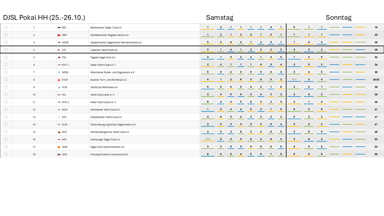 Am Sonntag ging es dann mit ähnlichen Bedingungen weiter, aber wir fanden nicht ganz so schnell in den Rhythmus wie am Vortag. Einige kleine Fehler und ein paar unglückliche Situationen kosteten uns Punkte, sodass wir am Ende auf dem vierten Platz landeten. Damit waren wir aber absolut zufrieden – ein solider Abschluss einer langen Saison und ein richtig gutes Gefühl für das, was noch kommt. Nächstes Event: Segelbundesliga Finale! auf dem Wansee vom 30.10.-1.11.